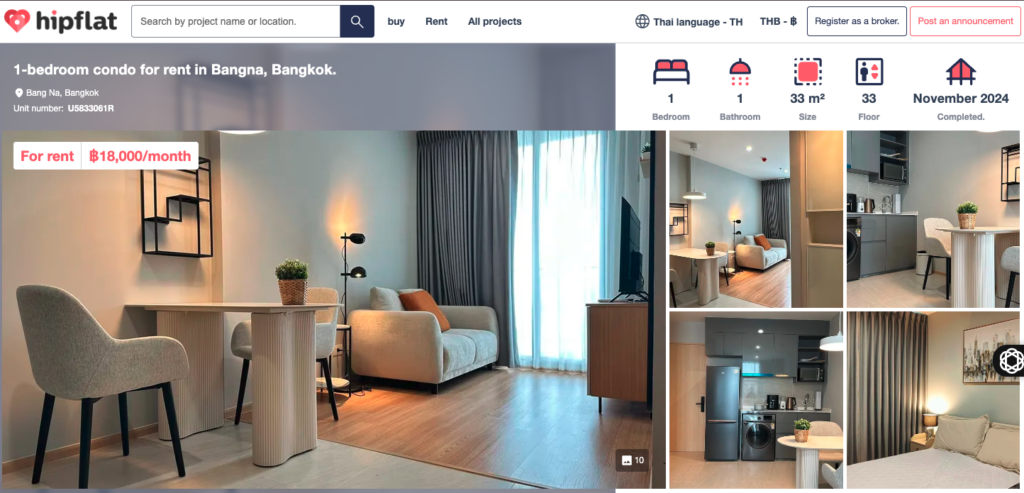 Here’s an example of a 1Br Condo for 18,000 Baht – $570usd